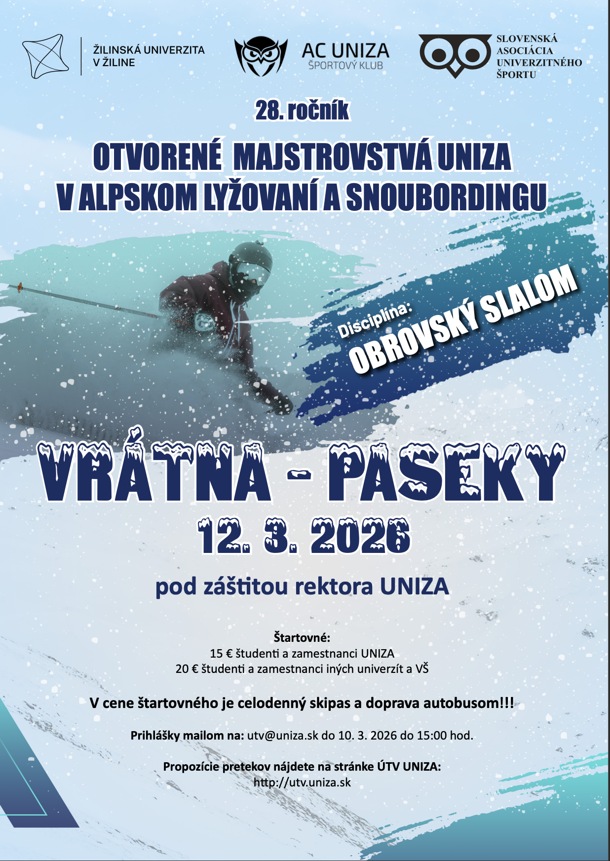 Zimná univerziáda SR 2026 prinesie na pôdu Žilinskej univerzity jedinečnú športovú atmosféru a vytvorí priestor nielen na súťaže, ale aj na podporu univerzitného športu, pohybových aktivít a aktívneho študentského života. UNIZA tak opätovne potvrdzuje svoj záujem o systematický rozvoj športu a reprezentáciu univerzity na národnej úrovni.